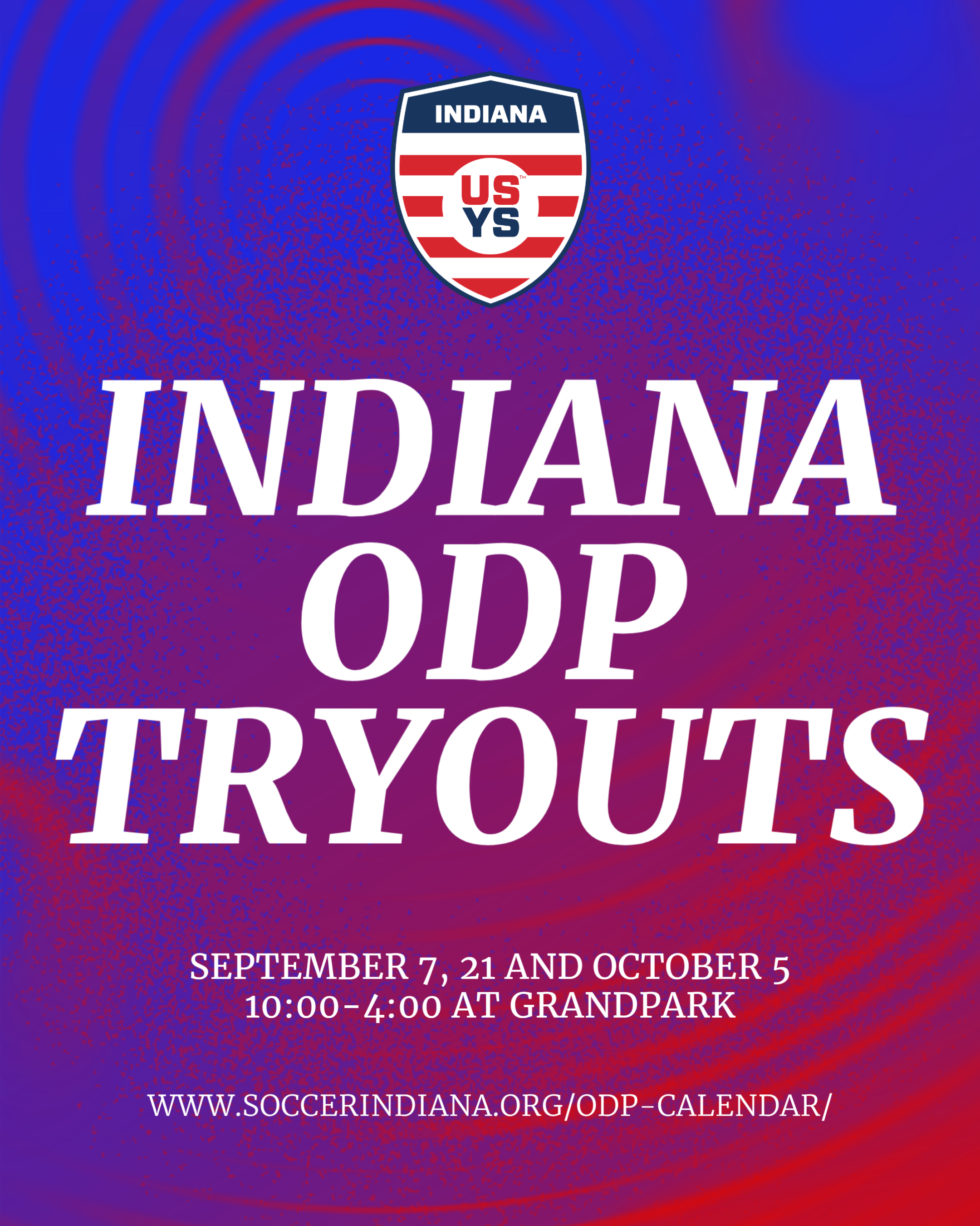 Indiana Soccer ODP Tryouts for the 2025-2026 season will start on September 7, 2025. Tryouts are open to anyone.