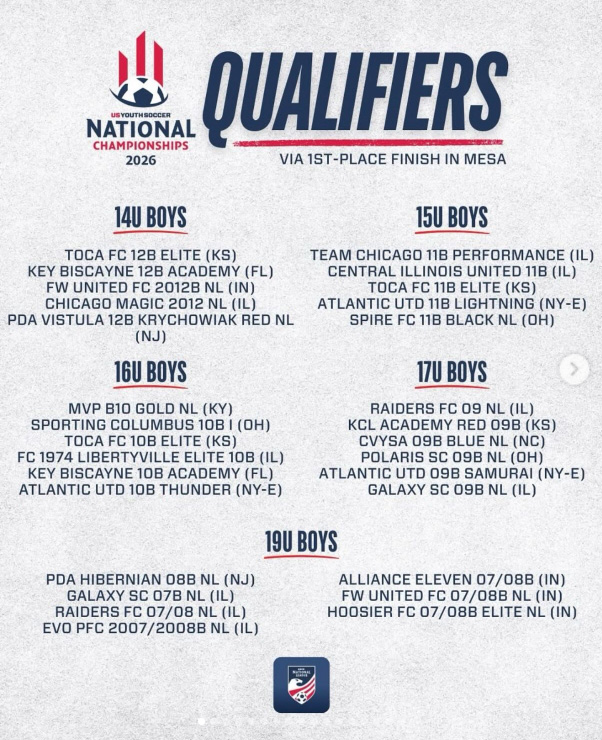 Competing in the Super Group places these teams among the top-performing programs in the country, underscoring the quality of players, coaches, and clubs across Indiana. We look forward to seeing our teams compete, represent the state, and continue raising the standard at the national level.