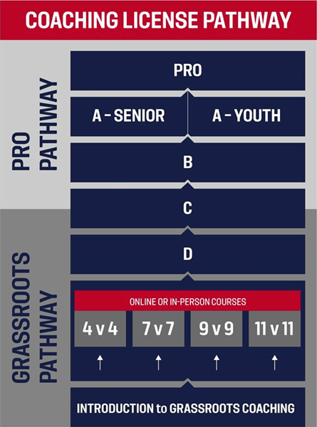 Concurrently with the roll out of the new courses, the current F and E courses will transition out of the U.S. Soccer Coaching Pathway. These licenses will still be recognized by U.S. Soccer and both certifications remain relevant as a means to advance within the pathway. As demonstrated in the past, member organizations will be empowered to organize and host the in-person grassroots courses and the updated D course on behalf of U.S. Soccer. More specific information on the newly formatted grassroots courses, including format and scheduling, will be released in early 2018.